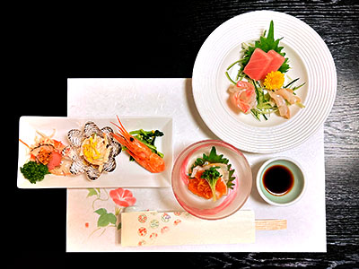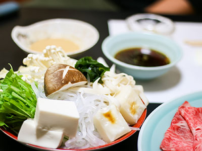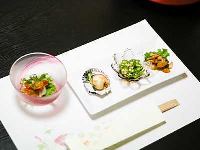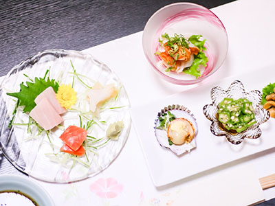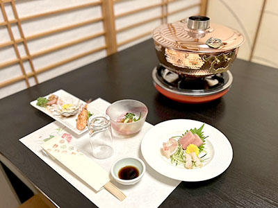 付出し、お造り、焼物、しゃぶしゃぶ。